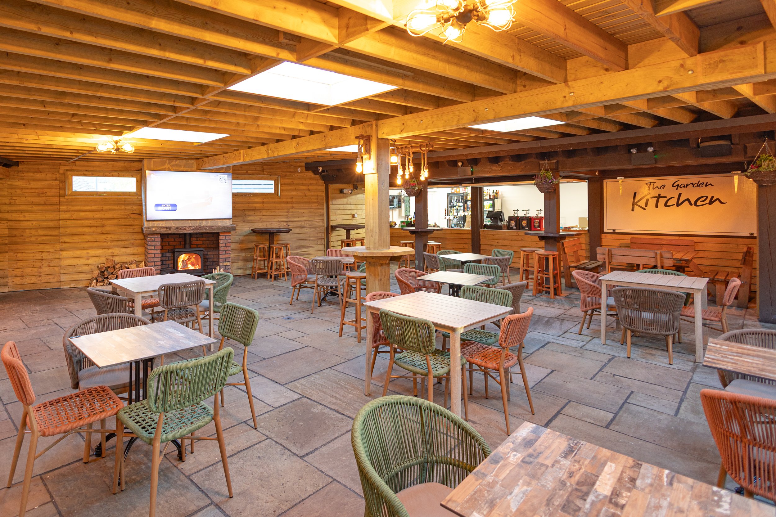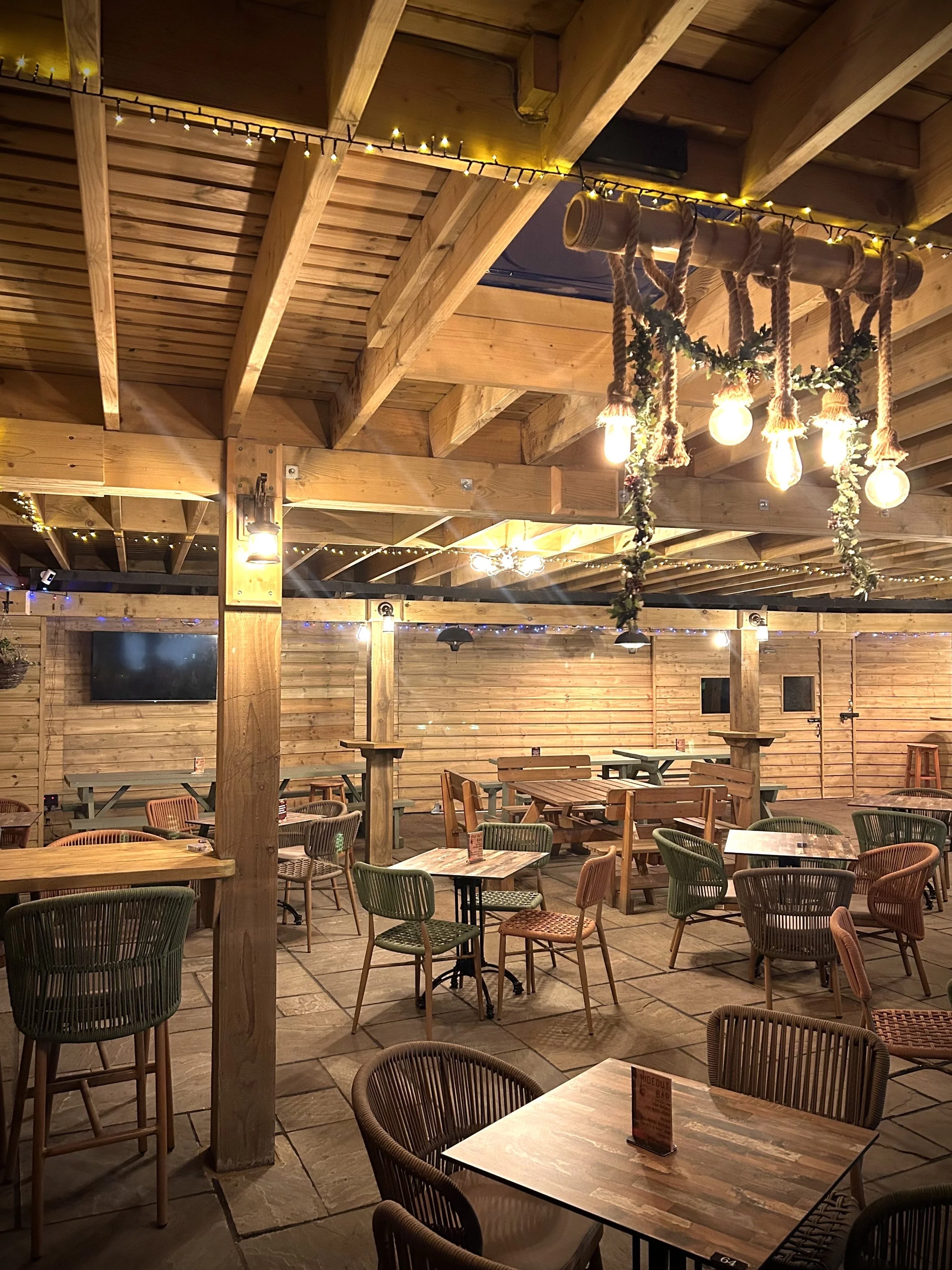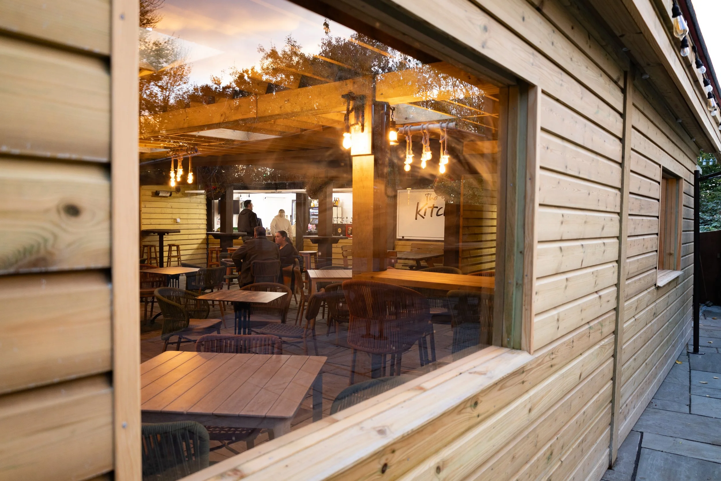 Designed for year-round use, The Hideout is fully sheltered with a fireplace and powerful heaters, while warmer months allow the space to open onto our Beer Garden.